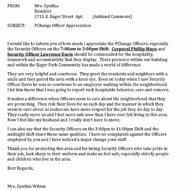PChange continues to grow in the Washington DC Metropolitan area. Effective December 2018 PChange has expanded it's footprint, in addition to covering the 88 acre footprint of Eager Park, we now provide Security Guard and Patrol services to LAZ Parking and the Mexican Consulate in Washington DC. Our diverse clients are a testament to the quality of the services we provide.